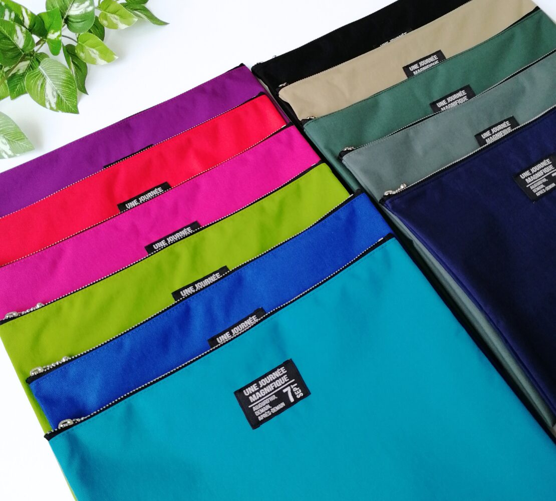 たっぷり入る、大きめサイズのナイロンフラットポーチです。